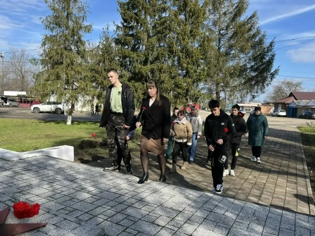 Возложение цветов в рамках акции "Цветы у обелиска" #ЗащитникиОтечества2026
